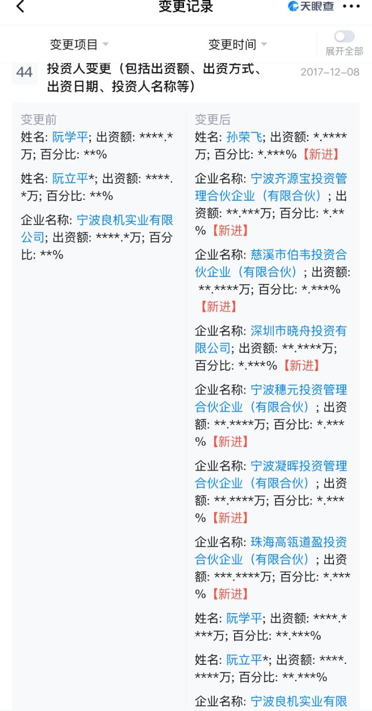 在2017年以前,阮立平兄弟作为公司唯一股东,持有公司100%股权。2017年12月,二人以12.8亿元价格向高瓴资本等7家投资方转让4.12%股权。