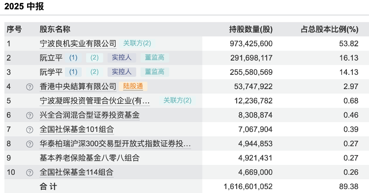 直接持股方面A策略,阮立平持股16.13%,阮学平持股14.13%。通过控股股东宁波良机实业有限公司,兄弟俩又控制了公司53.82%的股权。此外,两人还通过一致行动人关系控制着宁波凝晖投资管理合伙企业等实体,进一步巩固了控制权。